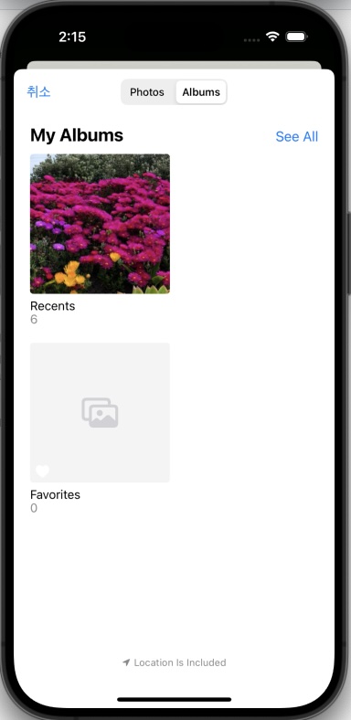 아래 그림처럼 앱의 이미지 부분을 누르면 앨범의 사진을 가져올 수 있습니다.