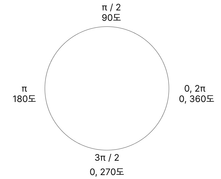 아래 그림은 라디안 각도로 원의 네방향을 표시한건데