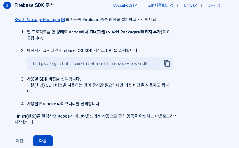 4. Firebase SDK 추가 입니다.