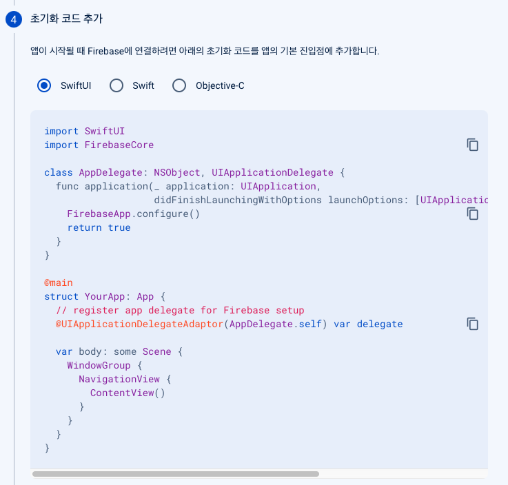 5. 프로젝트에 초기화 코드 추가 ( 마지막 )