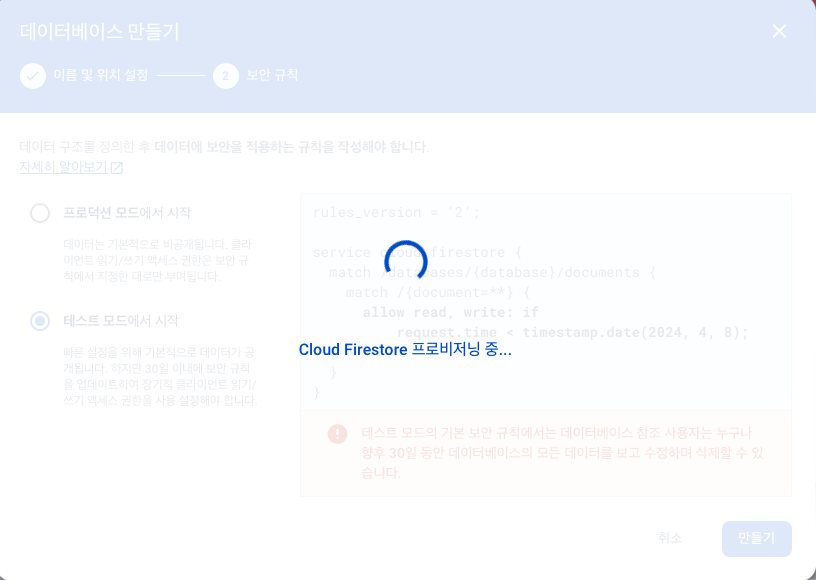 2. 프로젝트에 Cloud Firestore 세팅하기