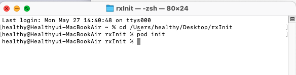 4. 해당 프로젝트 폴더 경로에서 pod install 입력(끝!)