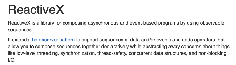 : 이름(ReactiveX)처럼 반응형 기반 프로그래밍이라고도 할 수 있을 것 같습니다.