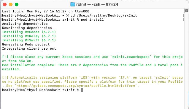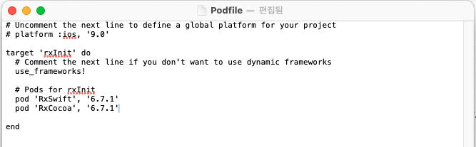 3. Podfile에 들어가 RxSwift 및 RxCocoa 텍스트 입력