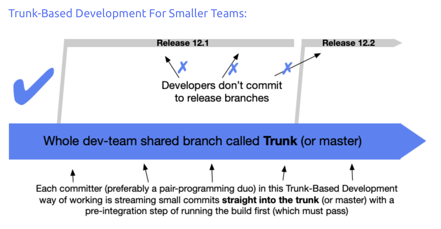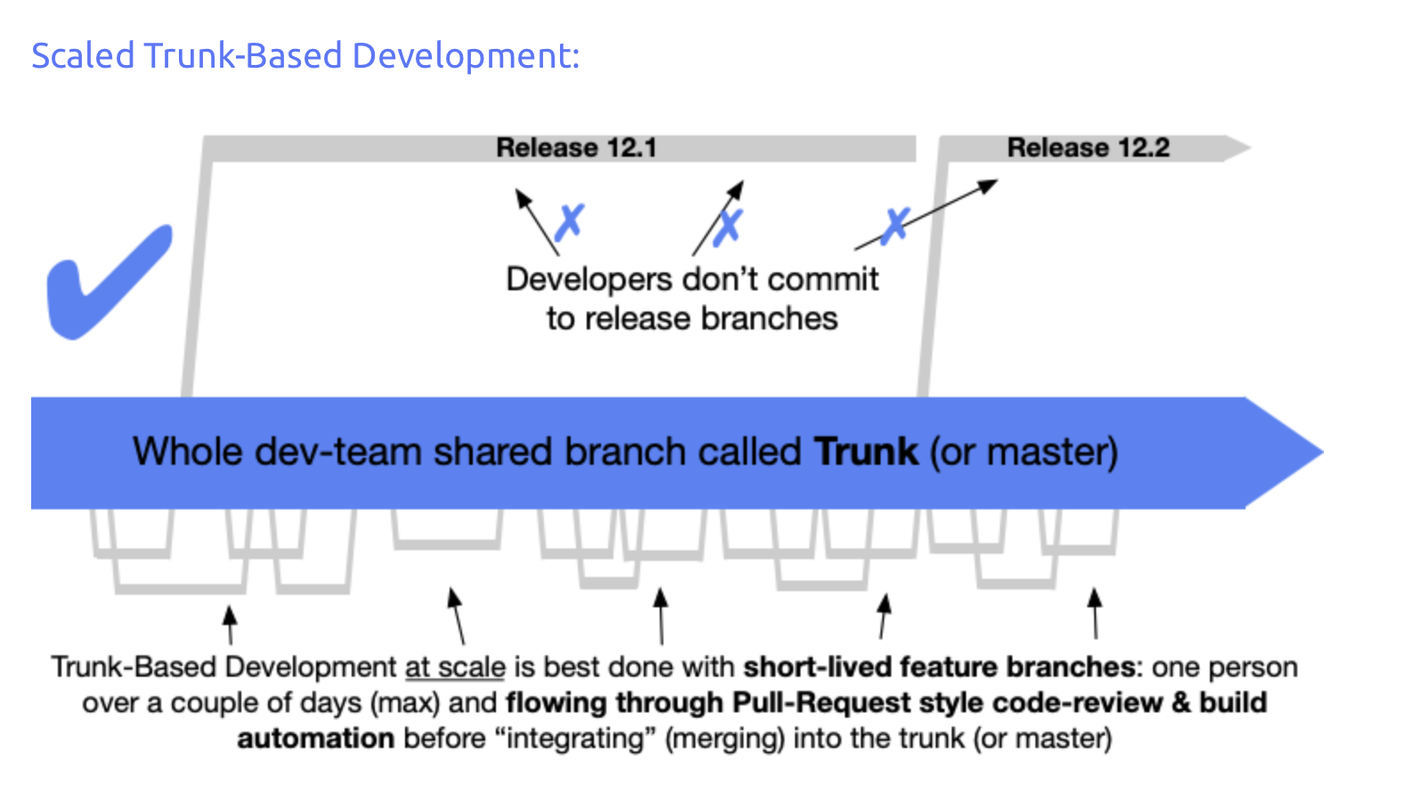 이런 방법으로 병합의 부담(merge pain)과 Flow 복잡성을 줄이는 것이 TBD의 핵심이라고 할 수 있습니다.