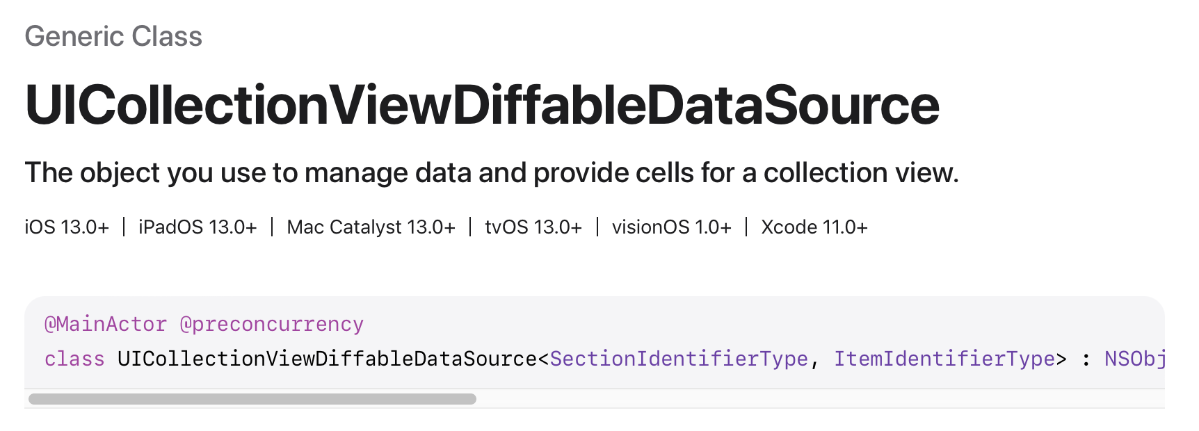 dataSource = UICollectionViewDiffableDataSource<Section, Item>(collectionView: collectionView, cellProvider: { collectionView, indexPath, itemIdentifier in