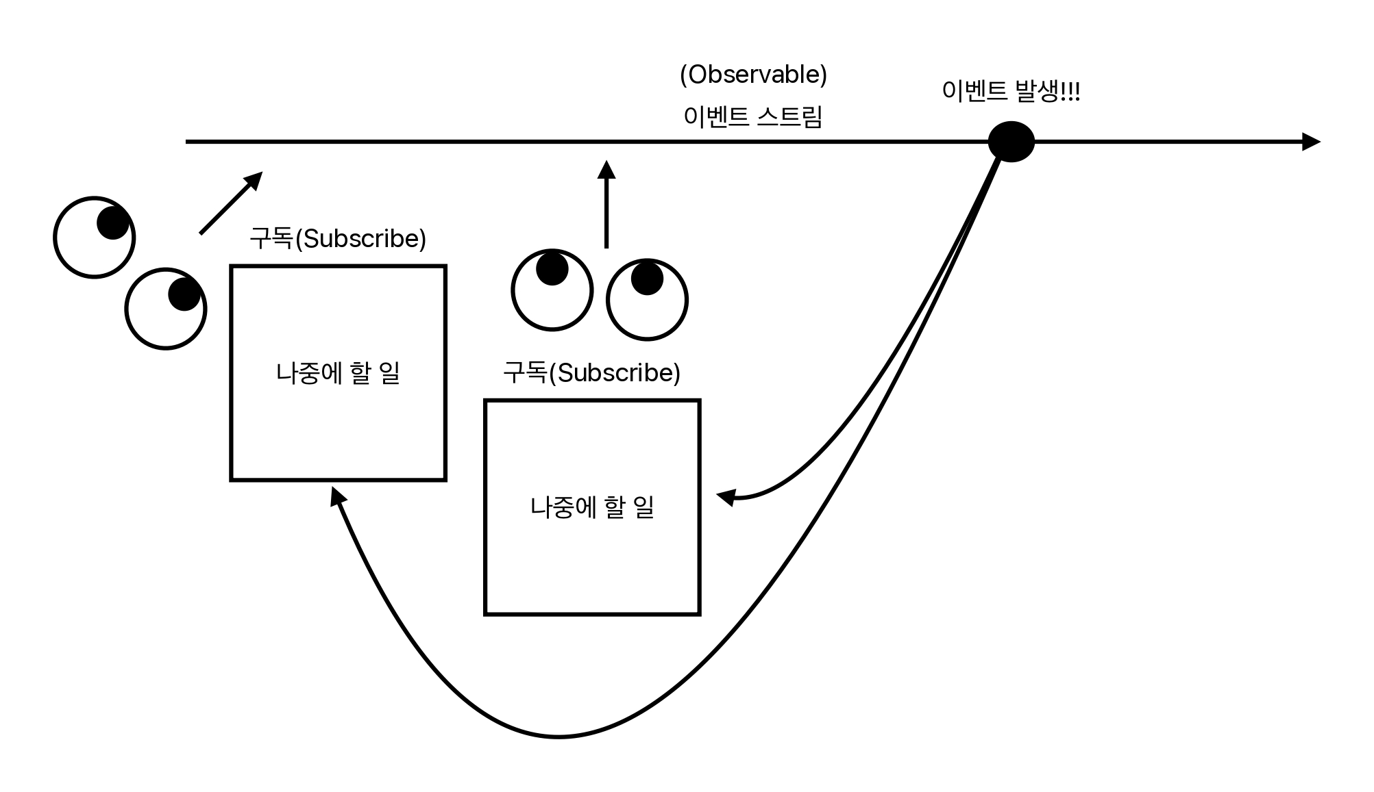 그리고 저 이벤트 스트림이라는 선을 지켜보는 것을 구독(Subscribe)한다고 표현합니다.