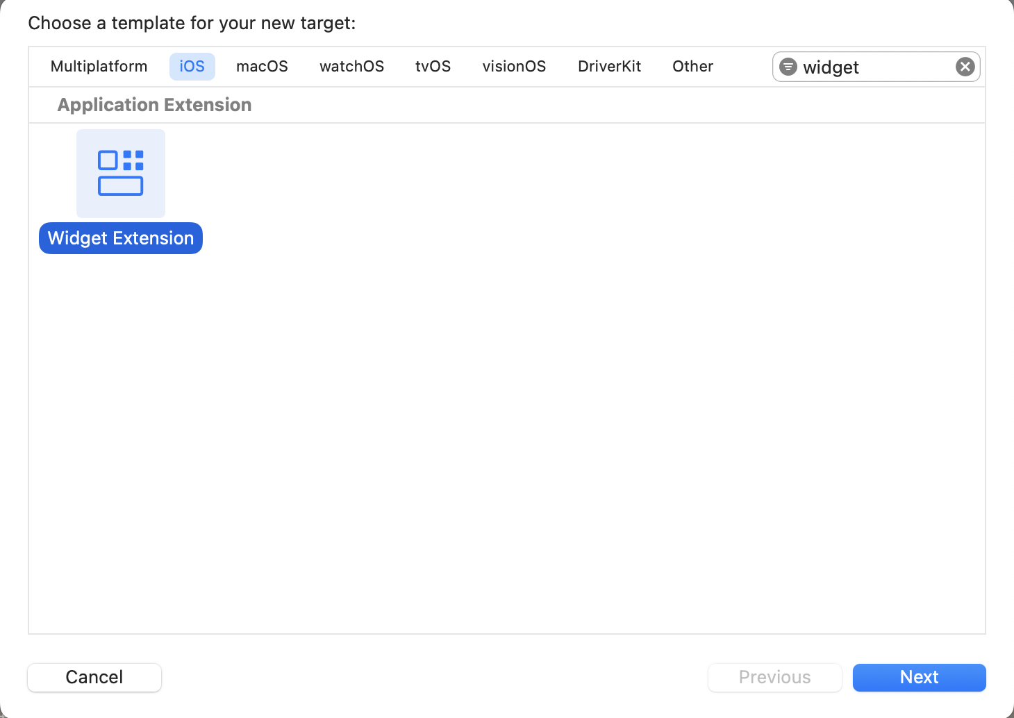 2. 필터에 widget을 입력한 뒤, 사진처럼 Widget Extension을 선택합니다.