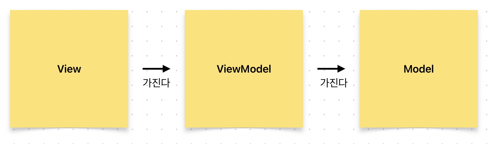MVVM패턴은 ViewModel은 Model에 의존하고 View는 ViewModel에 의존한다고 합니다.