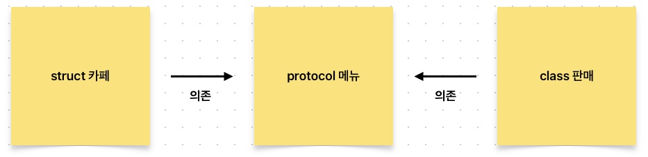 사진에 볼 수 있듯이 중간에 Menu가 생기면서 이제 Cafe와 Sell은 의존관계가 아닙니다.